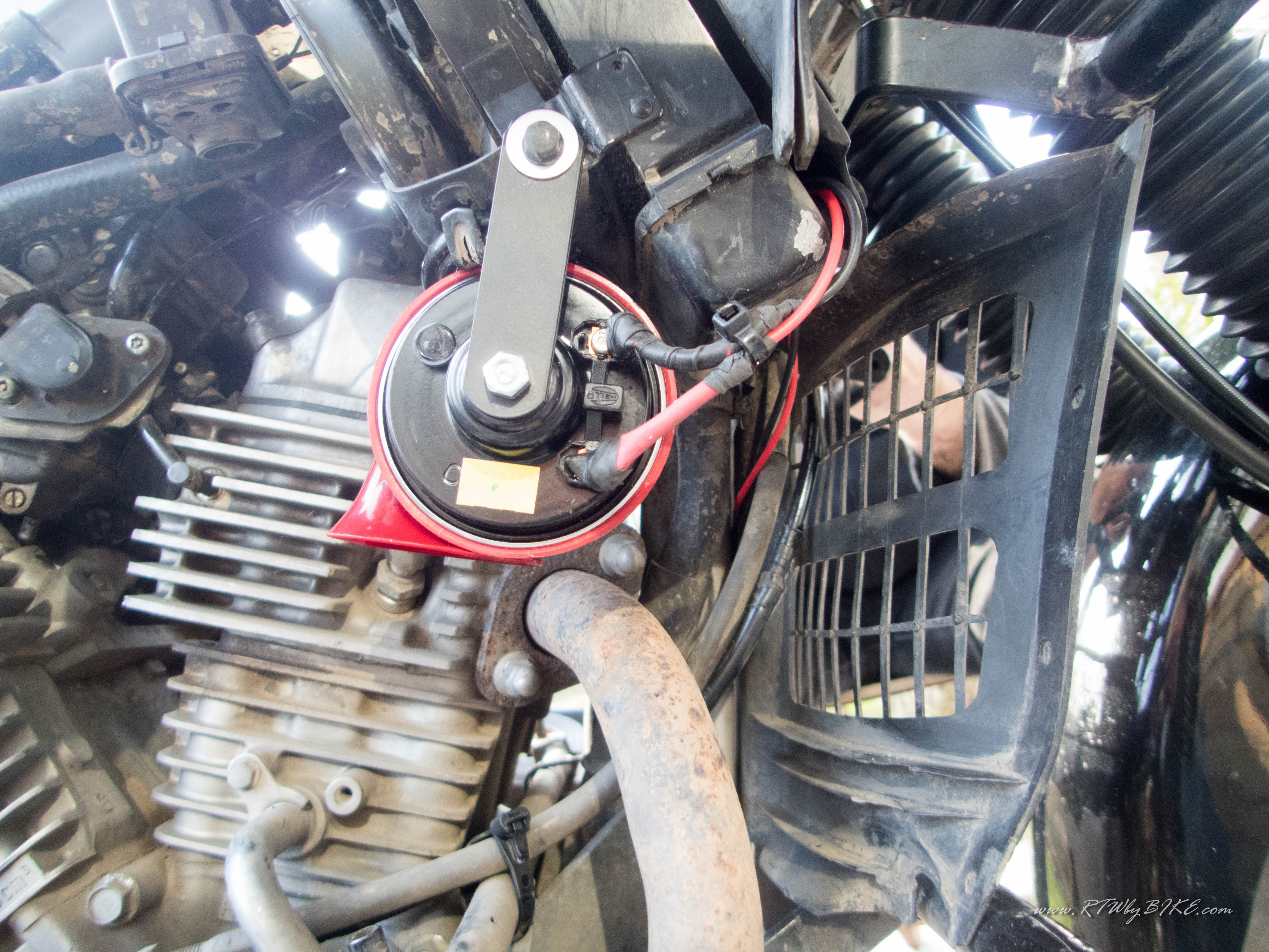 Rotational he started to shout and running around like a headless cock. It was UNREAL! Few moments later he was in the internet and placed help calls all over. Thanks to the great community all around we managed to find a used fork bridge on Saturday noon and already Monday it arrived via DHL Express and we were able to fit it (This time Sascha used the Torque Wrench!!!). Hurray! I will not have to be a pillion again, hihi! The time in-between we couldn’t spend driving but we fixed the Steel Flex Break lines and I cleaned the bike in all corners and I got a new great sounding exhaust and a dog fighting