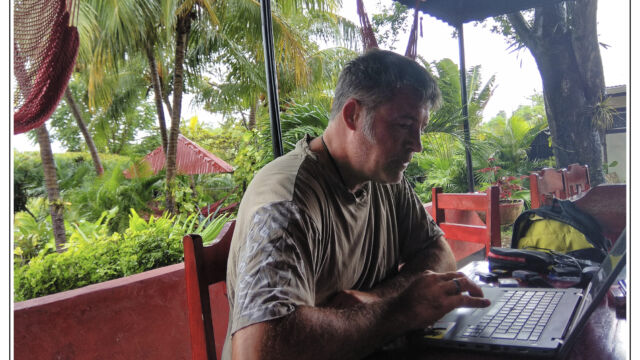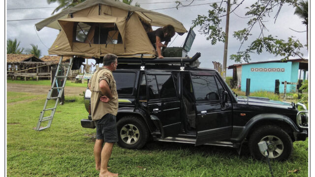 The next morning we all needed to go to get the inspection of our vehicles done. We were told to be there at 7 AM and we agreed to be there already at 6:30 AM. When we arrived there was already a long cue but hey, at 10 past 9 AM we all had our inspection done. Now we had to wait until 2 PM to get the papers. We drove back to the hostel having breakfast and another shower and to pack our things together. The plan was to leave after the inspection directly to Colón where we had the loading appointment at 7:30 next morning. At 2 PM at the office they told us to sit down and wait a few minutes…we were watching the scenery… clerks carrying coffee cups, clerks carrying empty boxes, waiting, clerks carrying some papers, waiting a little bit longer and after two hours they handed out the inspection papers. The traffic in the city was mad! And Adeline, Francois and us we decided to stay one more night in the hostel in Panama City and drive very early morning to Colón. Adeline made incredible delicious crepes and we had a relaxed evening.