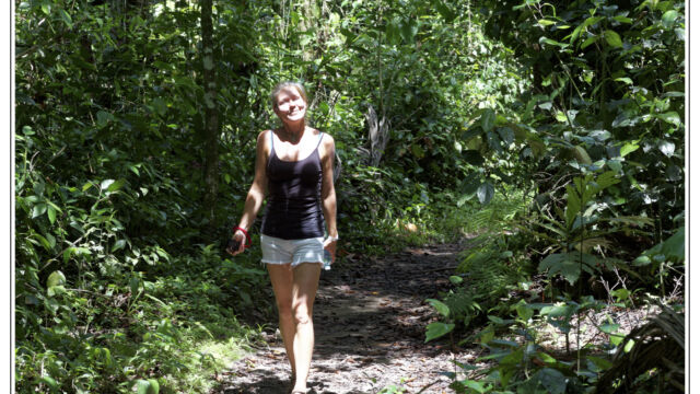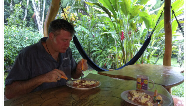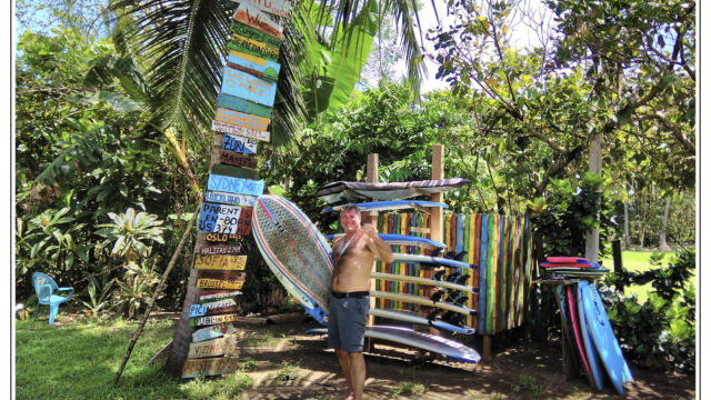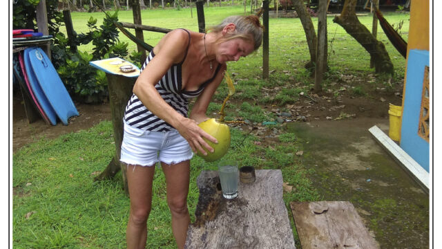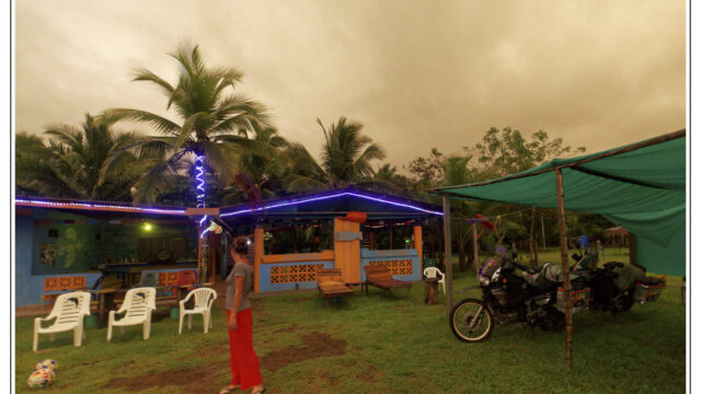 On the way to Panama City we had a stop in Playa Farallon at Trixi´s little cozy Taca Tucan Hostel just next to the beach. The bikes were just fitting in her front garden and we jumped into the ocean directly after parking. We spend a nice evening together with her, her friends and with Adeline and Francoise (our container-buddies who parked at the beach) in her garden drinking beer and eating Pizza. The Pan-American Highway is not really nice at this point, so where possible we made a little detour through the hills along the coast.