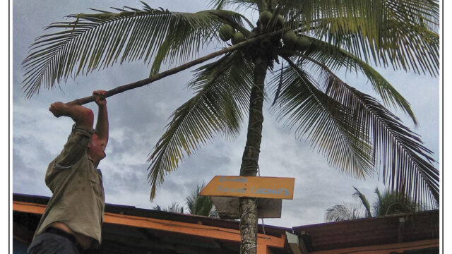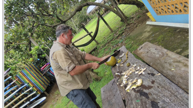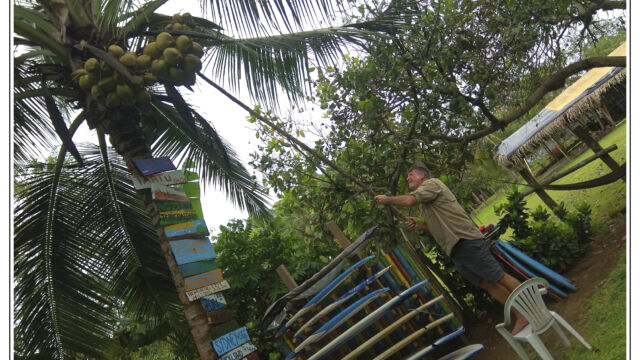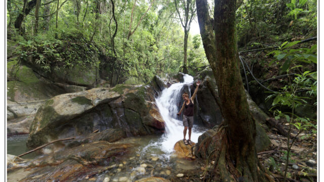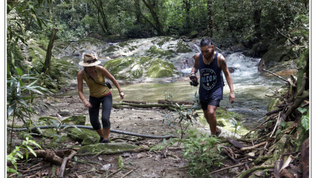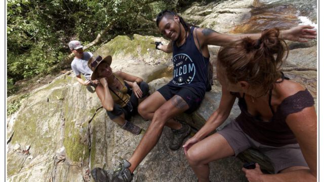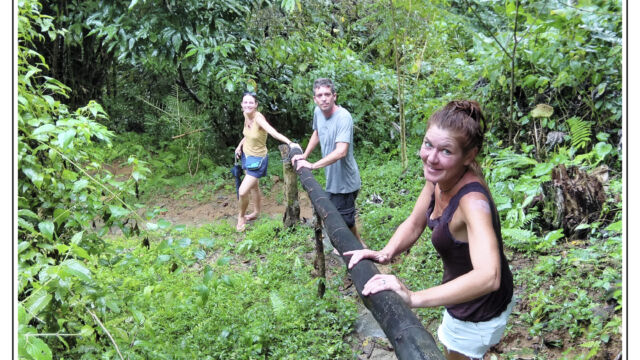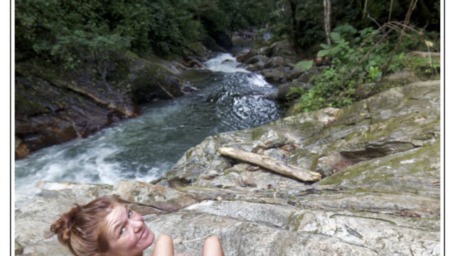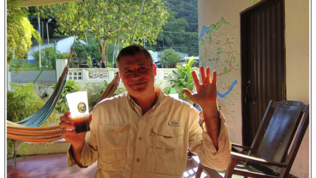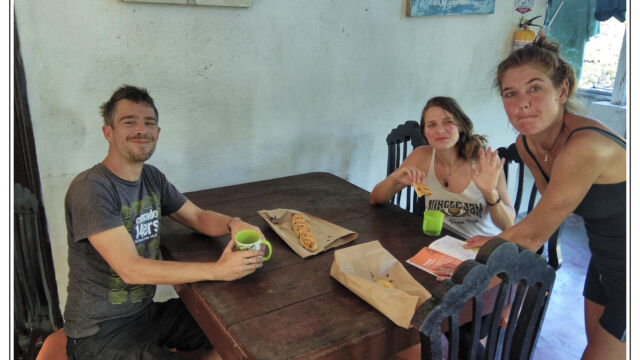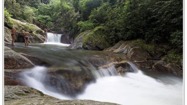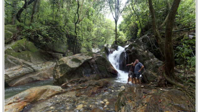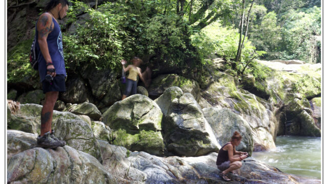 After all these days in the cities in the heat and processes and bureaucracy we ached for mountains and fresh air. Our next destination we chose was about 250km north of Cartagena: Minca. It is a small village at an elevation of 650m in the Sierra Nevada above Santa Marta. On the way we managed to find new horns for Sascha which he fixed as soon as we arrived in this much cooler temperature than the boiling cities. This was a perfect place to plan our further route, to work on the blog, to fix small thinks and to explore the lovely area. We were staying three nights and we relished the spirit of this little village with several beautiful nature spots close by. You can easily hike to the Pozo Azul, a popular swimming hole with two small waterfalls. As it was weekend when we went there the pool was packed with people, 300+, tssss. But when we climbed up we had the cascades at the upper falls just for us. Las Piedra is another river bath place just around the corner. And if you spend more time here you can learn about its organic coffee plantation or explore the bird-watching places.