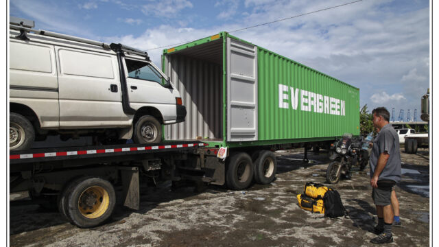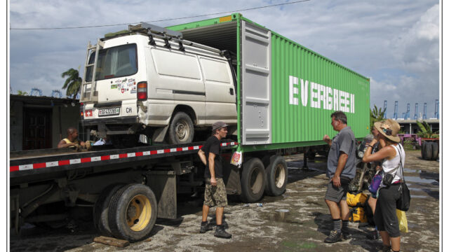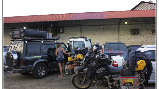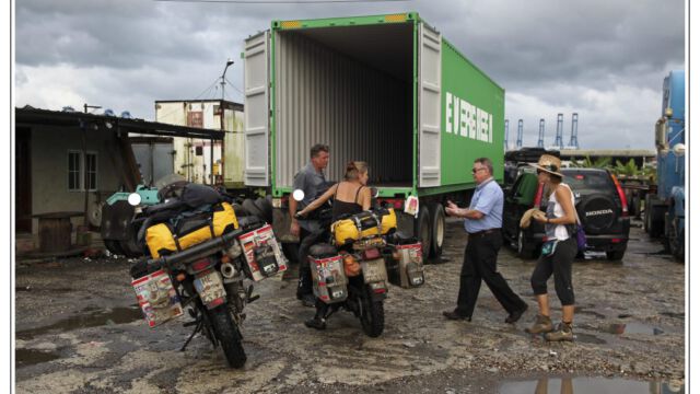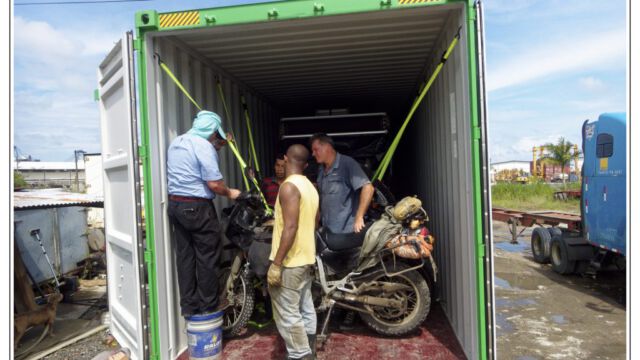 Tuesday morning we went early to the port. Maybe you know `The Twelve Tasks of Asterix´ so you have a good idea of what we had to go through. We had 21 steps and were running from one place to another, back and forth, waiting getting another paper, walking back and forth, waiting… But the second day we finally had the bill of lading, the TVIP and even the insurance done. And the moment we opened the container we saw our motorcycles as we left them and left happily the port in the afternoon.