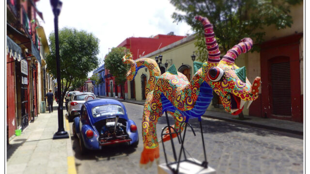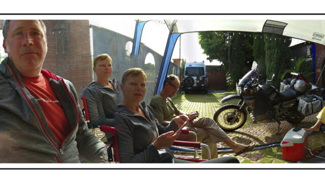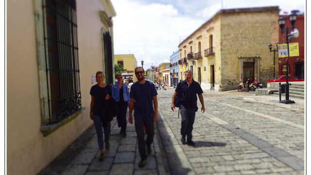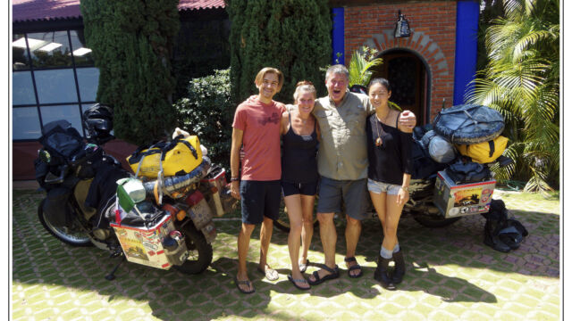 The Mexican Independence Day, 15th September, we celebrated with all the great people at the Oaxaca Overlander Oasis. We spent a lovely time with all of them, enjoyed the lunch of the cooking class and went all together for the party at the plaza of San Maria Del Tule. Watching the dancers and the fireworks, listen to the live music and the speeches. And of course we had a few shots of Mescal which was offered to everybody out of a gigantic bottle. The final fireworks ended with a metal-torro loaded with fireworks which they toss around the plaza like crazy again and again. We were just wondering nobody was set on fire while they were doing that. As well we visited one of these days Oaxaca city. It is well worth a visit even though it is pretty touristic. Before everybody was leaving on Monday they organized a surprise birthday cake for Sascha – it was a day too early but they just wanted to celebrate somehow with him together: How sweet! We had to find a room for our spare tires which Calvin from the Overland Oasis kindly ordered for us and so we turned out to be the last ones leaving the place. But we were looking forward to meet one or the other on the road again as we were all heading somehow south…