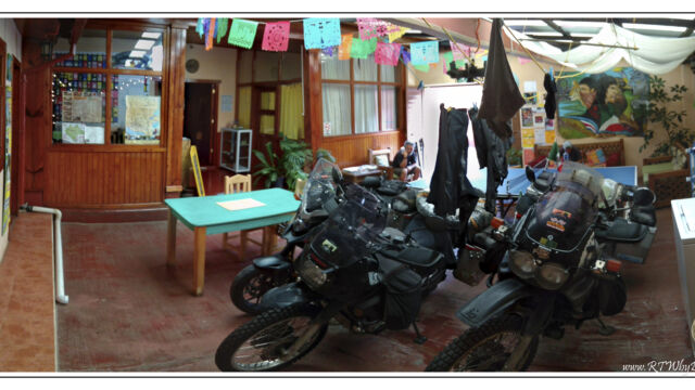 On the way to there we met Mike, another motorcycle traveler from the States. We agreed to meet early morning at the gas station to cross the border together.