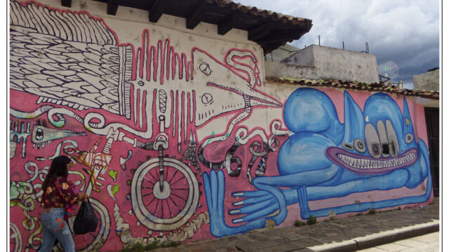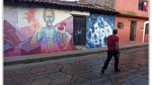 San Cristobal is a beautiful city in Chiapas. The hostel allowed us to park all three motorcycles in their entrance/community hall so we did not have to worry at all. We liked exploring the colorful city, the churches and the markets for three days. One of these days we took the colectivo/little bus to visit San Juan Chamula. The town enjoys unique autonomous status within Mexico. No outside police or military are allowed in the village and they have their own police force. Pretty famous is the church of San Juan. They do practice rituals in there as chanting prayers and drinking ceremonial cups of Posh, sugar-cane-based liquor while sitting in groups on the floor which is covered with green pine boughs. The church is filled with hundreds of candles and a shaman is healing people at the altar area while bumbling and sacrificing/ killing a chicken. – Can we recommend visiting that place? Hard to say – we saw already many curious places or uncommon rituals. But hey it does not cost a lot and if you are close by just go and find out yourself. You will not find any pictures here from the inside as it is strictly forbidden to take any. And there are guards all around to enforce that! If they see you taking a picture or video they just take your camera apart apparently…