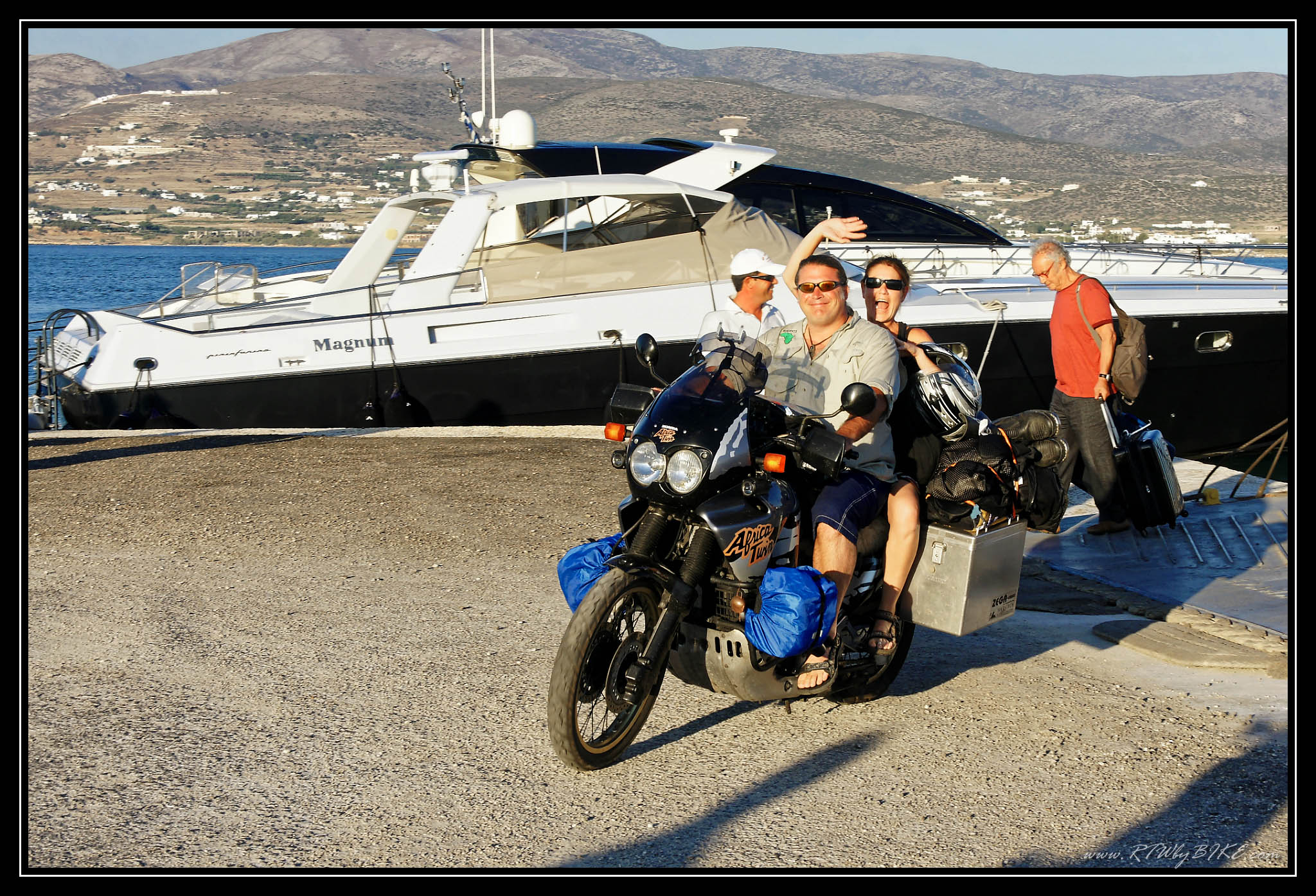 We both always loved to travel – and how could it be otherwise: of course we met while travelling. It was in the summer of 2000 on a little Greek Cyclades Island called Antiparos. Nearly immediately, by the end of that year we moved together to Cologne, Germany and 5 years later to Prague, Czech Republic. To explore the country and to spend the weekends in the country side we bought a used Honda Africa Twin. After a 10-Year trial period we finally married and planned our 1st longer Trip on the motorbike: 4 weeks Honeymoon-Trip through the country where we met, Greece.